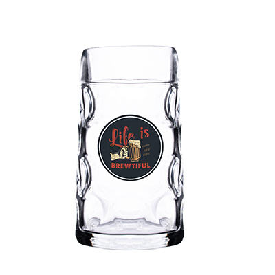 Bayerischer Zauber. Ein solider und handlicher Bierkrug mit charakteristischen Vertiefungen in den Wänden. Die Vertiefungen verleihen dem goldenen Getränk im Inneren eine dreidimensionale Wirkung.