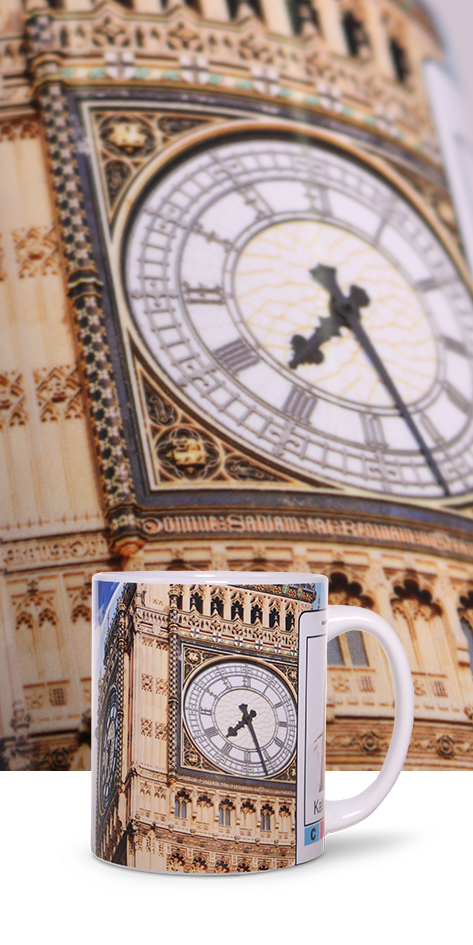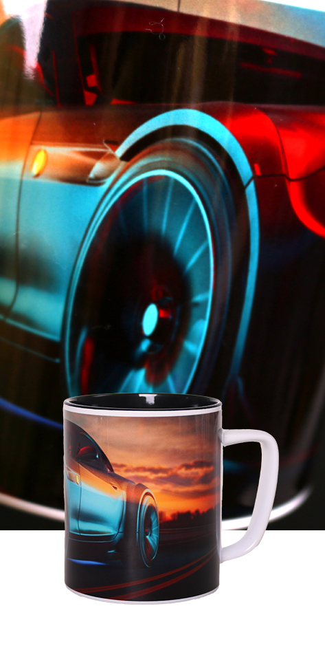 Qualitativ hochwertiger Sublimationsdruck auf einer keramischen Oberfläche mittels einem speziellen Transferpapier. Diese Dekortechnik steht nur für bestimmte Artikel zur Verfügung, die über eine dafür notwendige Polymerbeschichtung verfügen.